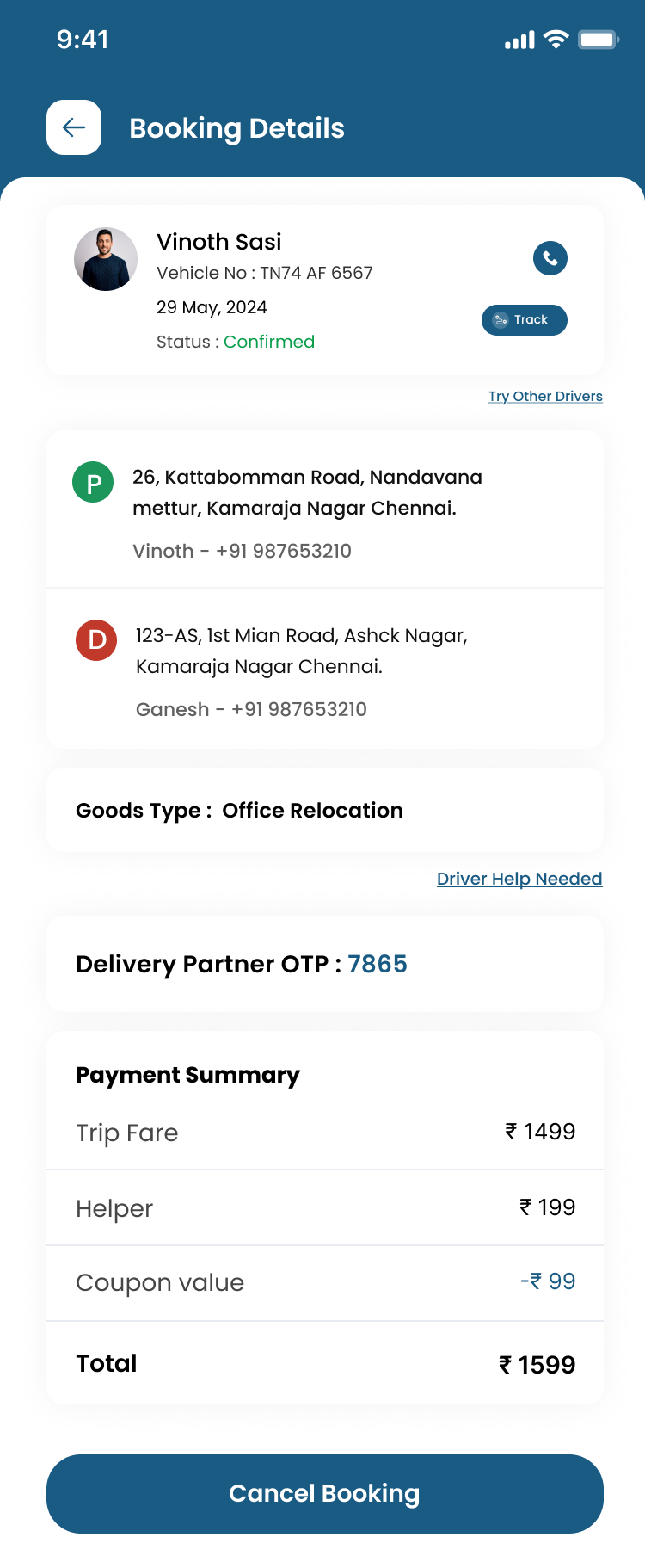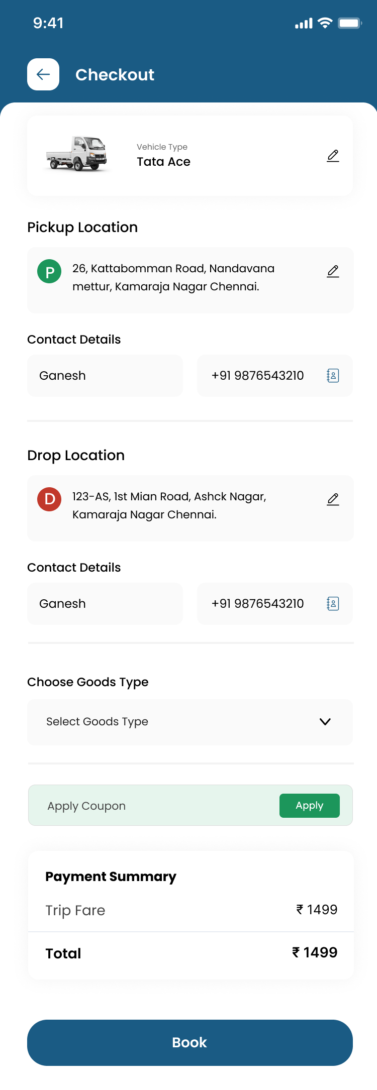 Choose Goods Type,Cofirm Detail and Book Service with Payment